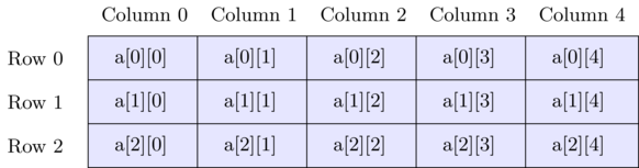 如果宣告 : int a[3][5];
