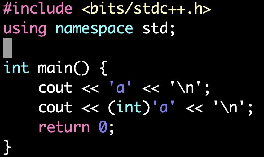 'A' <=> 65
