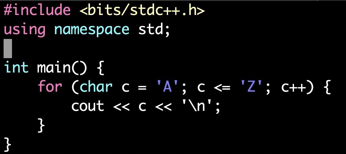 印出A - Z~