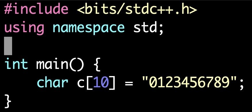 一個字串-> int s[10];