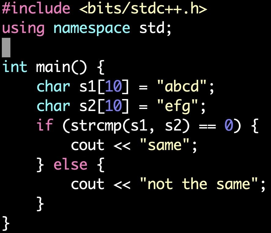 int strcmp(char* s1, char* s2)