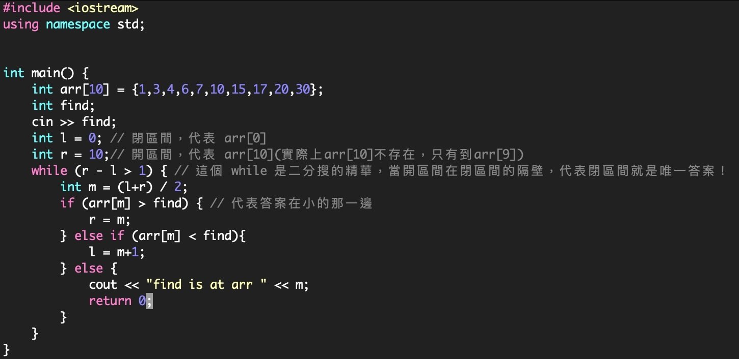 二分搜的寫法有很多種,這邊介紹我個人習慣的一閉一開