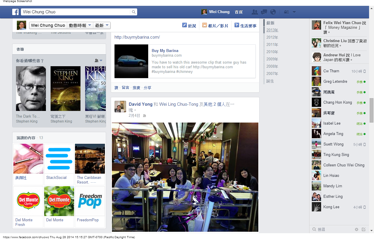 - 在這一天:是指在歷史上的今天(幾月幾日),你可以看看你facebook上的朋友在國去的某一個時間點上發生了什麼事、或貼了怎樣的留言。