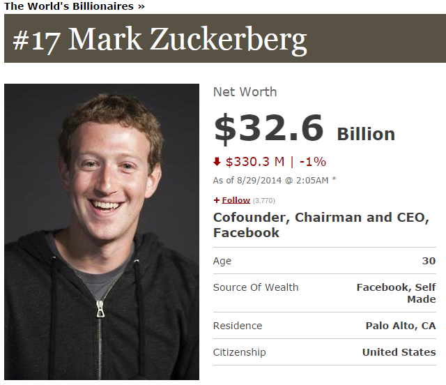 - Facebook 周一2014年9月8日股價升0.8%,報77.89美元,市值衝上2016億美元(1.56萬億港元),躍升為全球市值第22大公司。其市值不僅超越其 他科技巨企如電腦服務業龍頭IBM、晶片商英特爾及最大商業軟件商甲骨文,亦打敗全球最大車廠豐田汽車和最大飲品公司可口可樂。