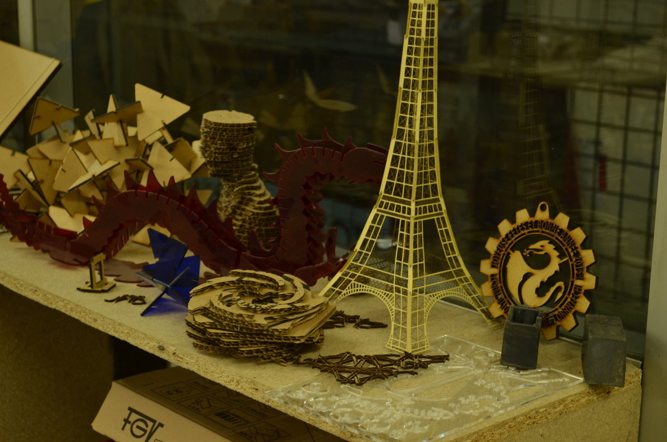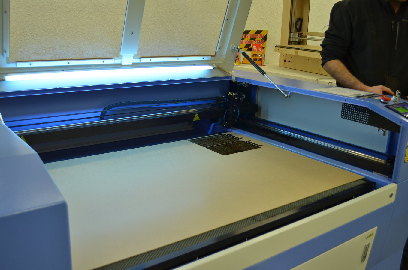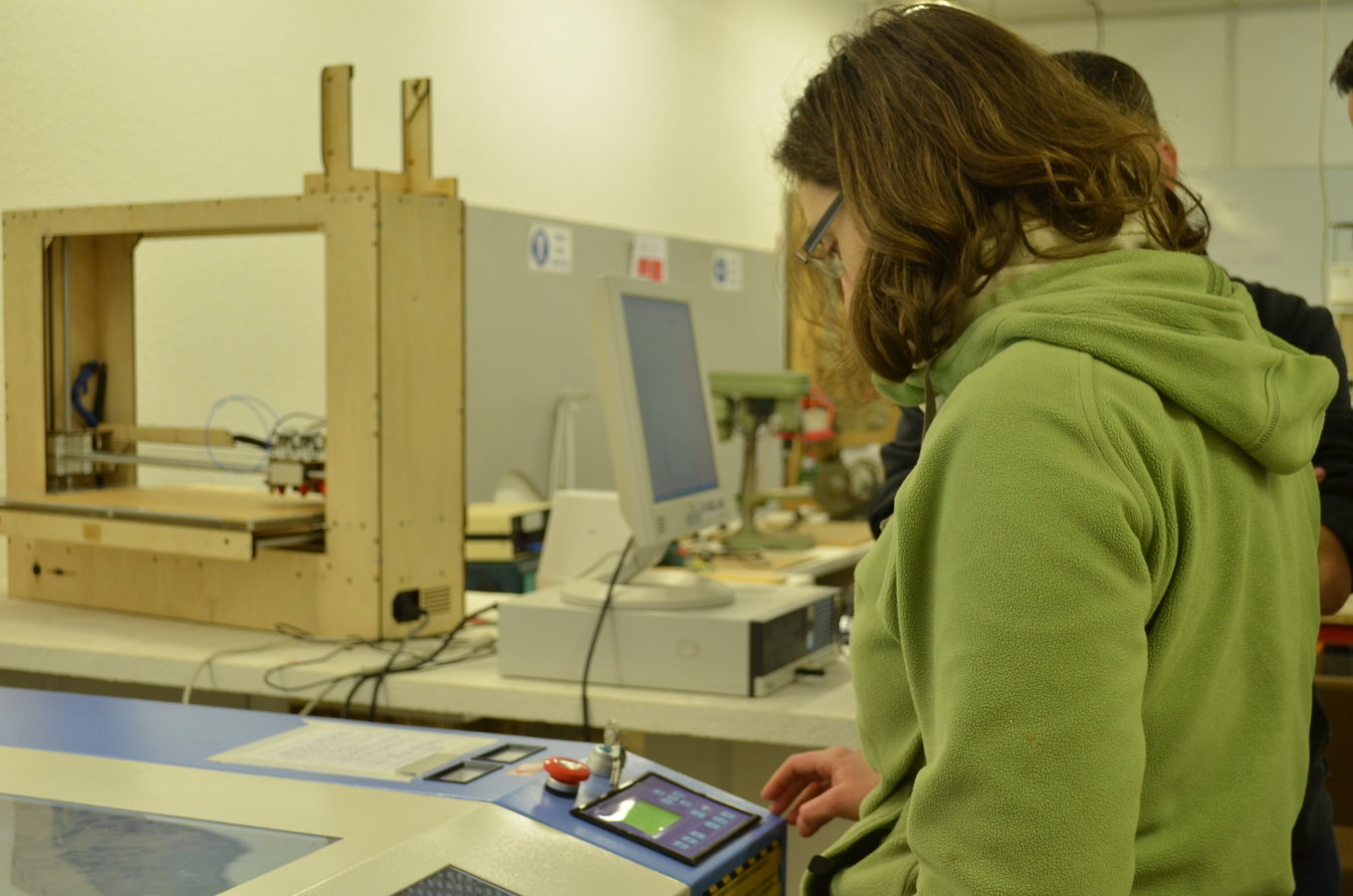 Caroline Rondel explique le fonctionnement de la découpeuse laser