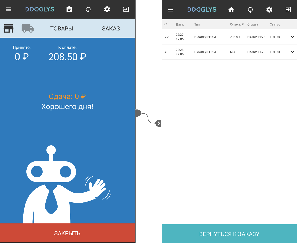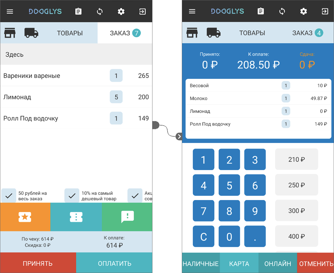 на тему: "Сопряжение мобильной онлайн-кассы с системой автоматизации торговли Dooglys"