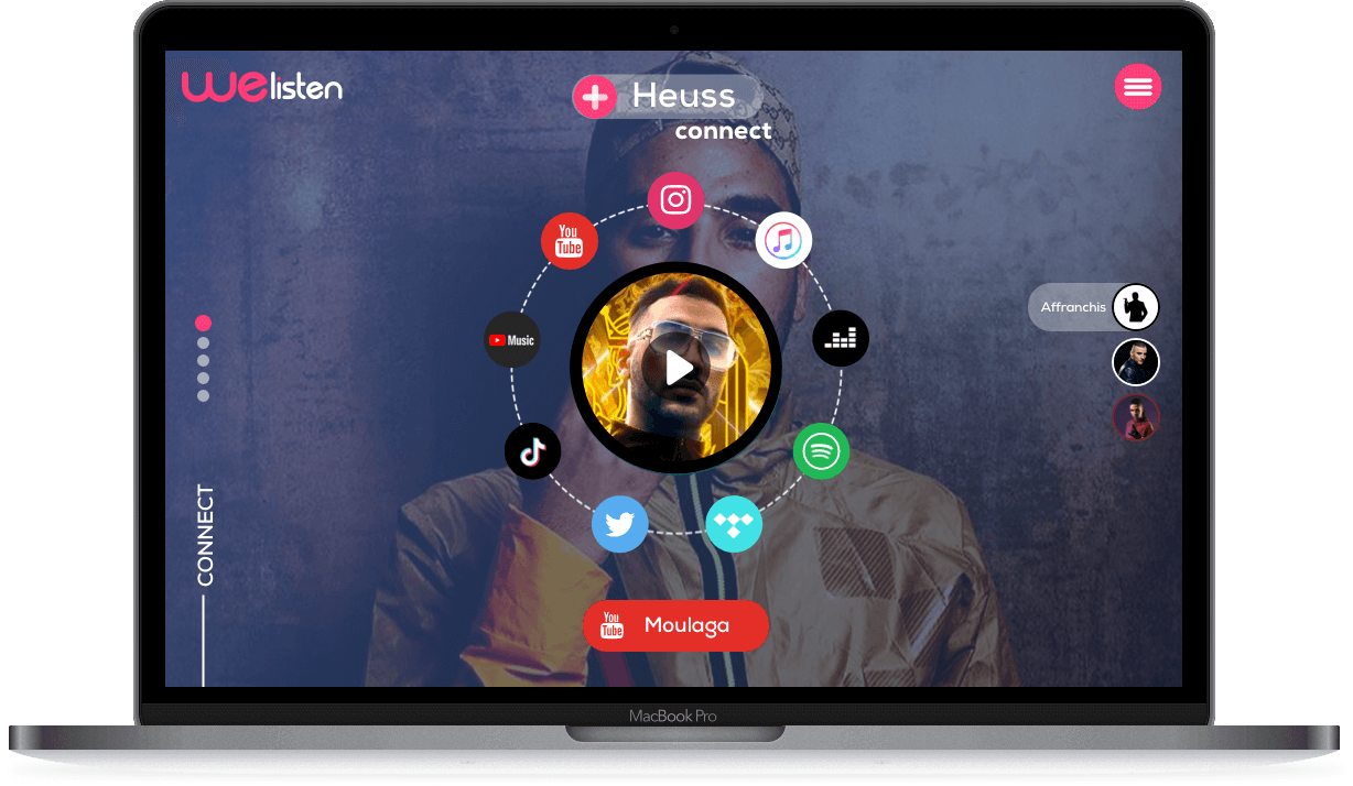 Centralisation de tout l'univers digital de l'artiste avec un design responsive optimisé pour tous les devices