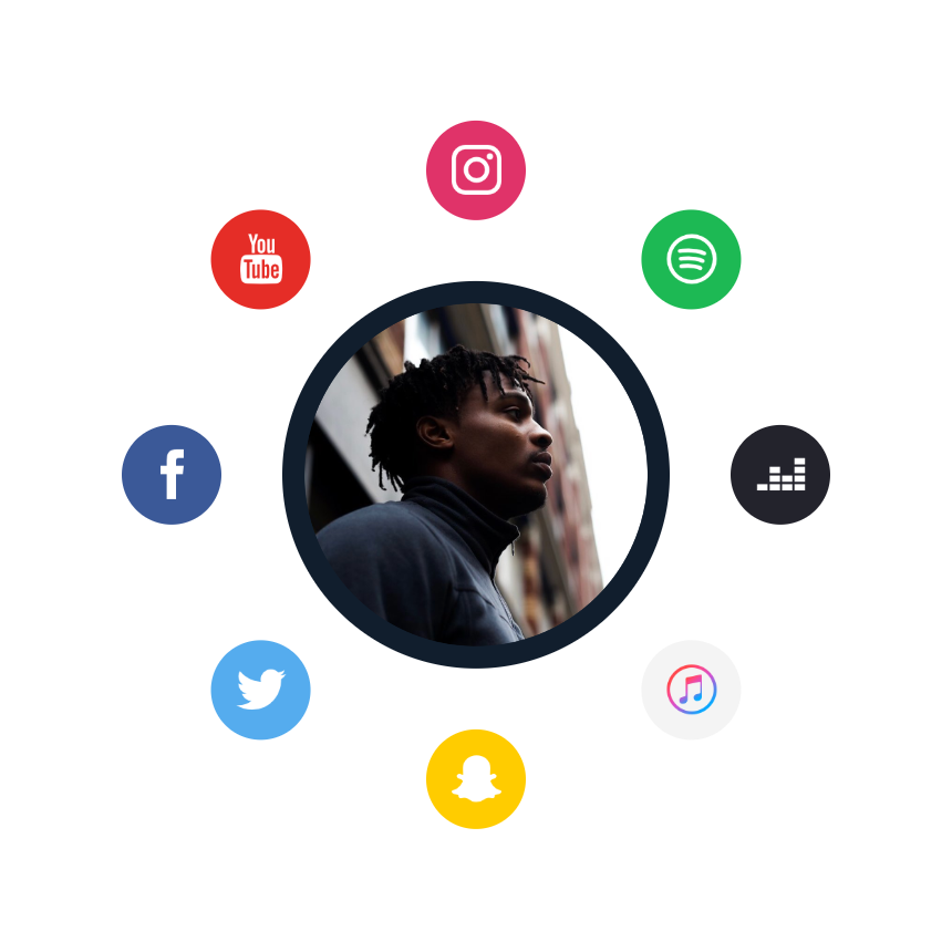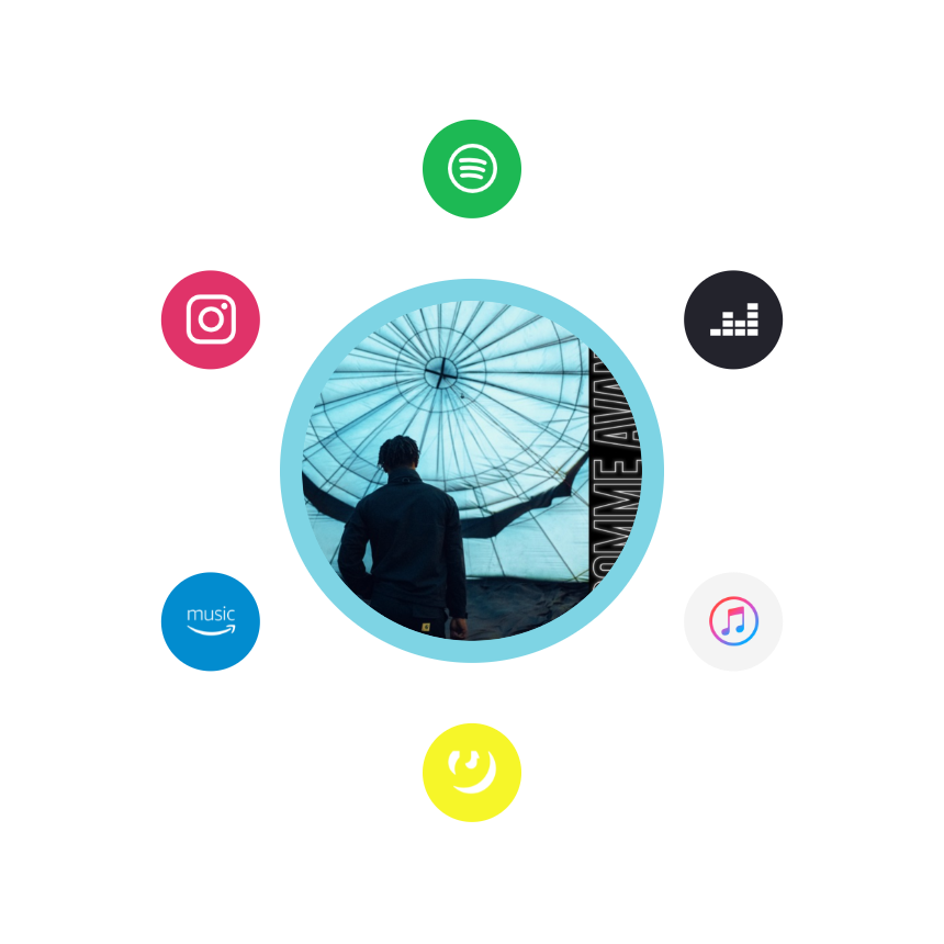 Landing page de l'artiste, d'un album ou d'un single qui regroupe toutes les plateformes, les réseaux sociaux et les autres liens importants sur une page optimisée et design qui respecte son univers graphique