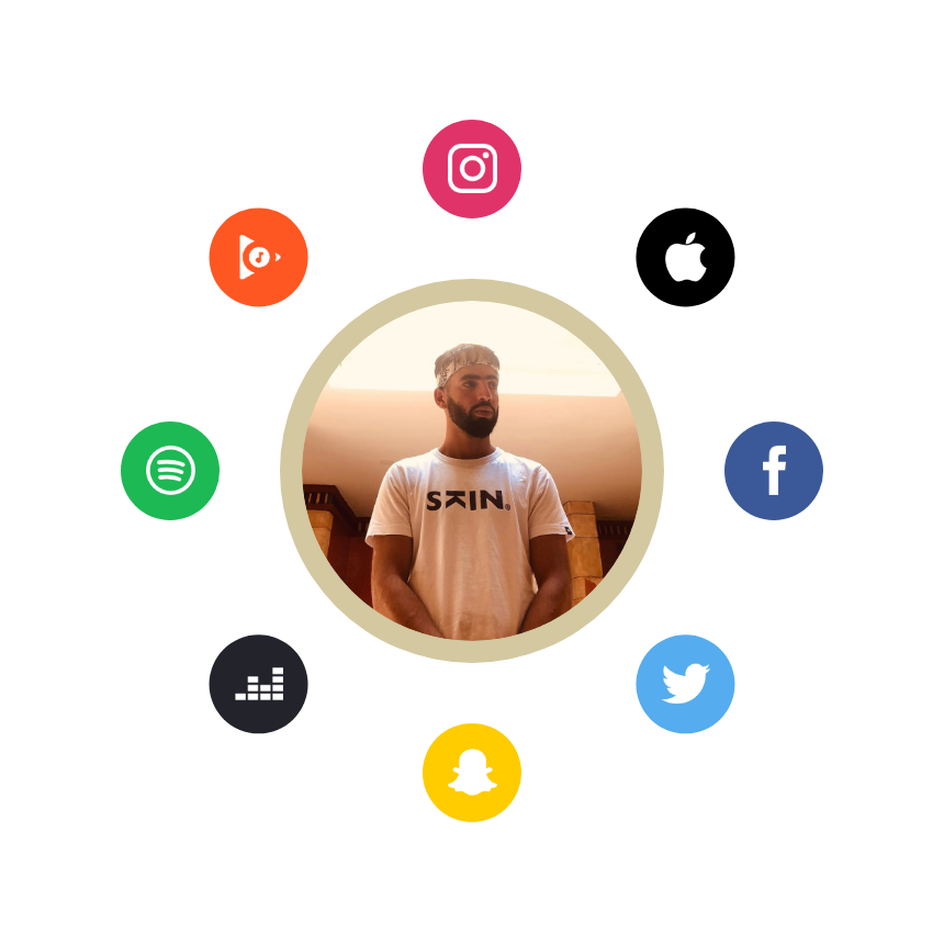 Landing page de l'artiste, d'un album ou d'un single qui regroupe toutes les plateformes, les réseaux sociaux et les autres liens importants sur une page optimisée et design qui respecte son univers graphique
