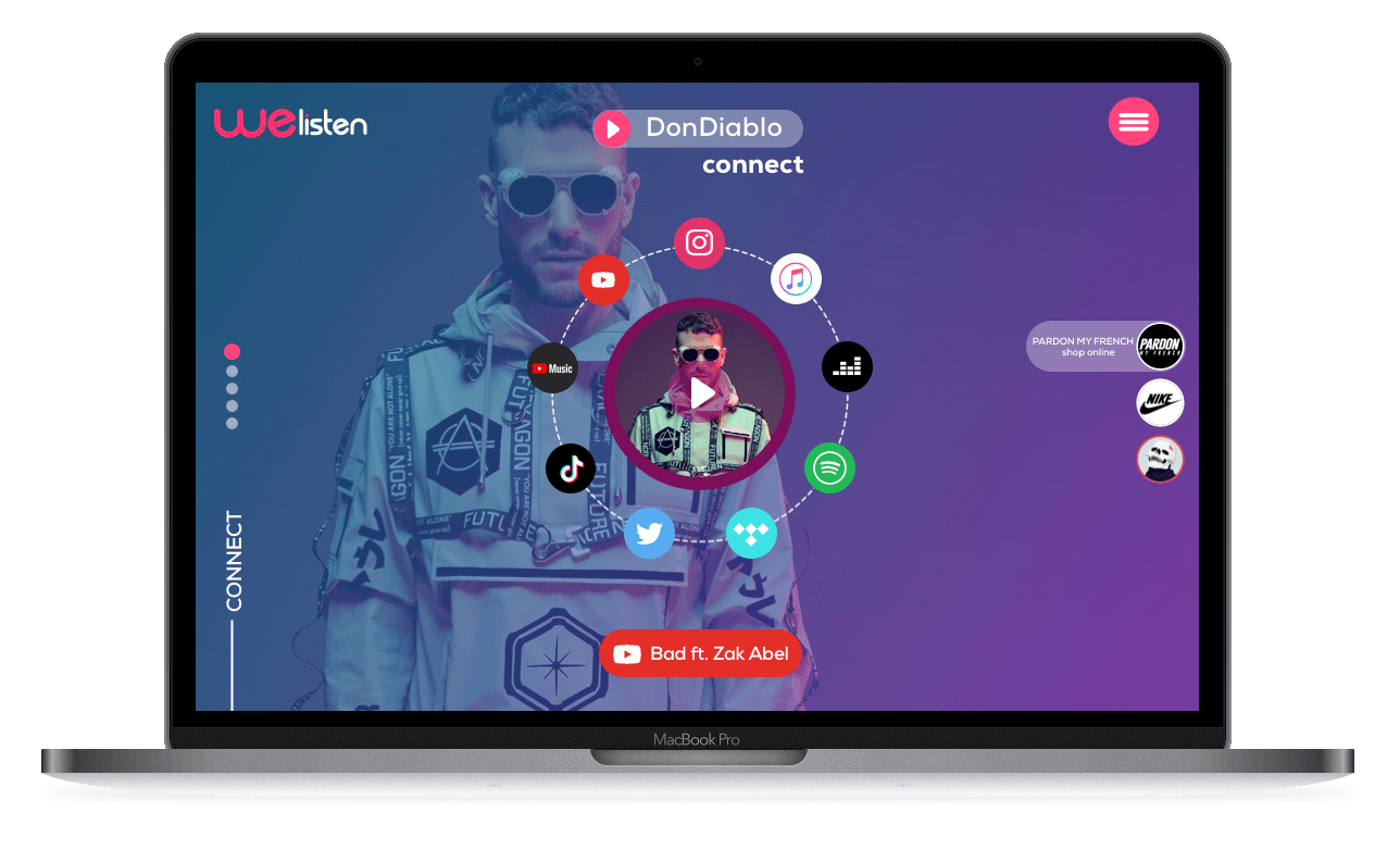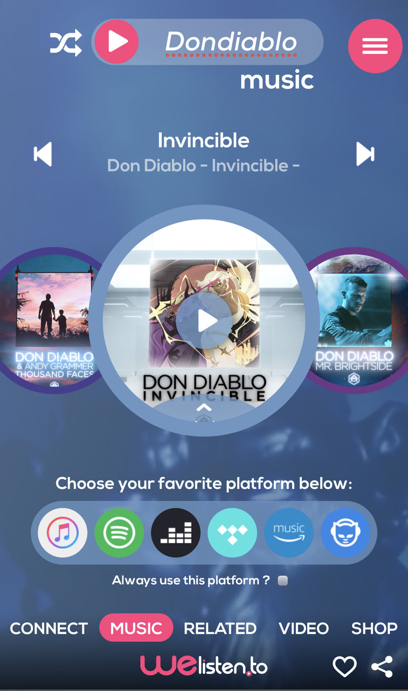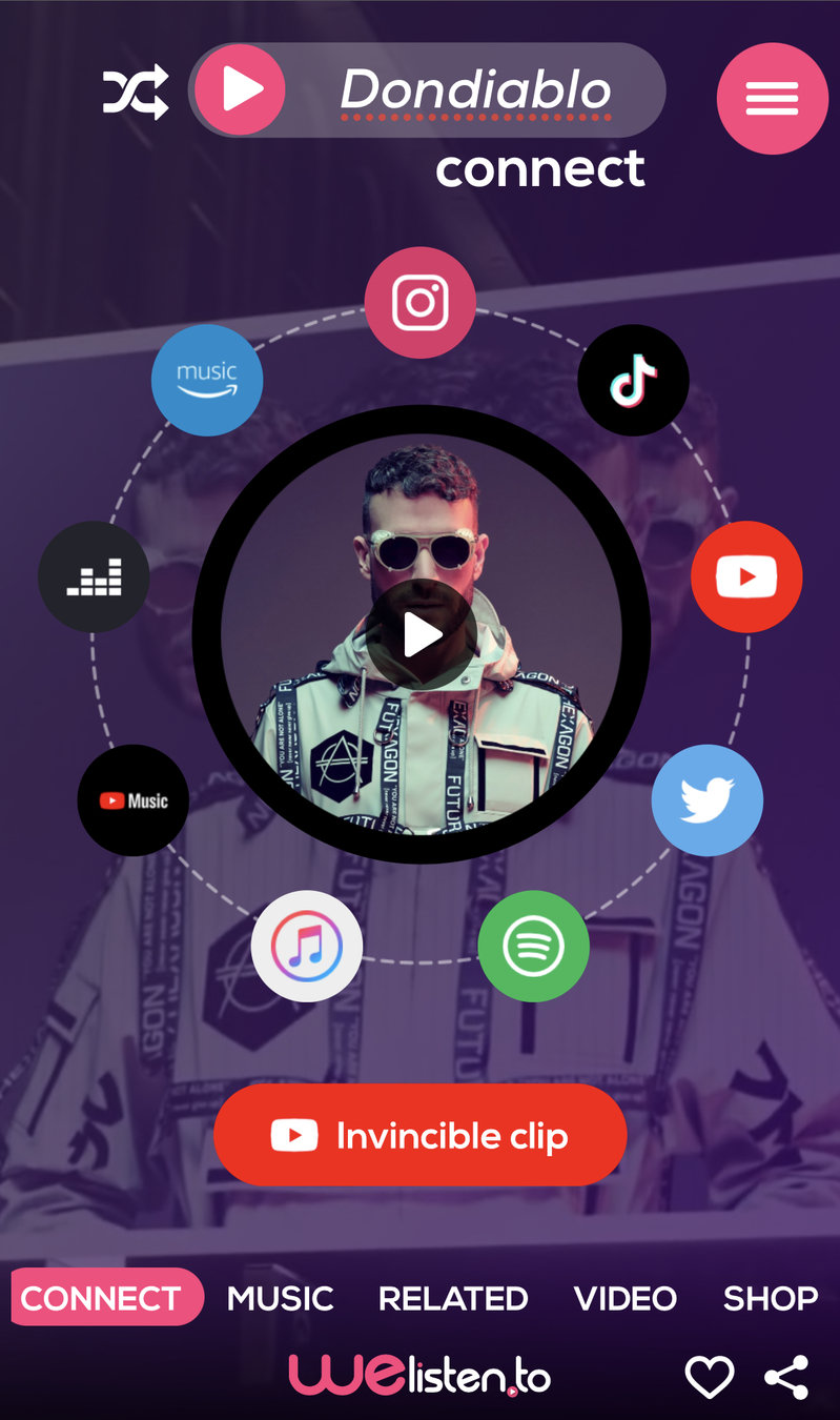 The connect block displays all the artist's links in one place with deep-linking, stats and tracking