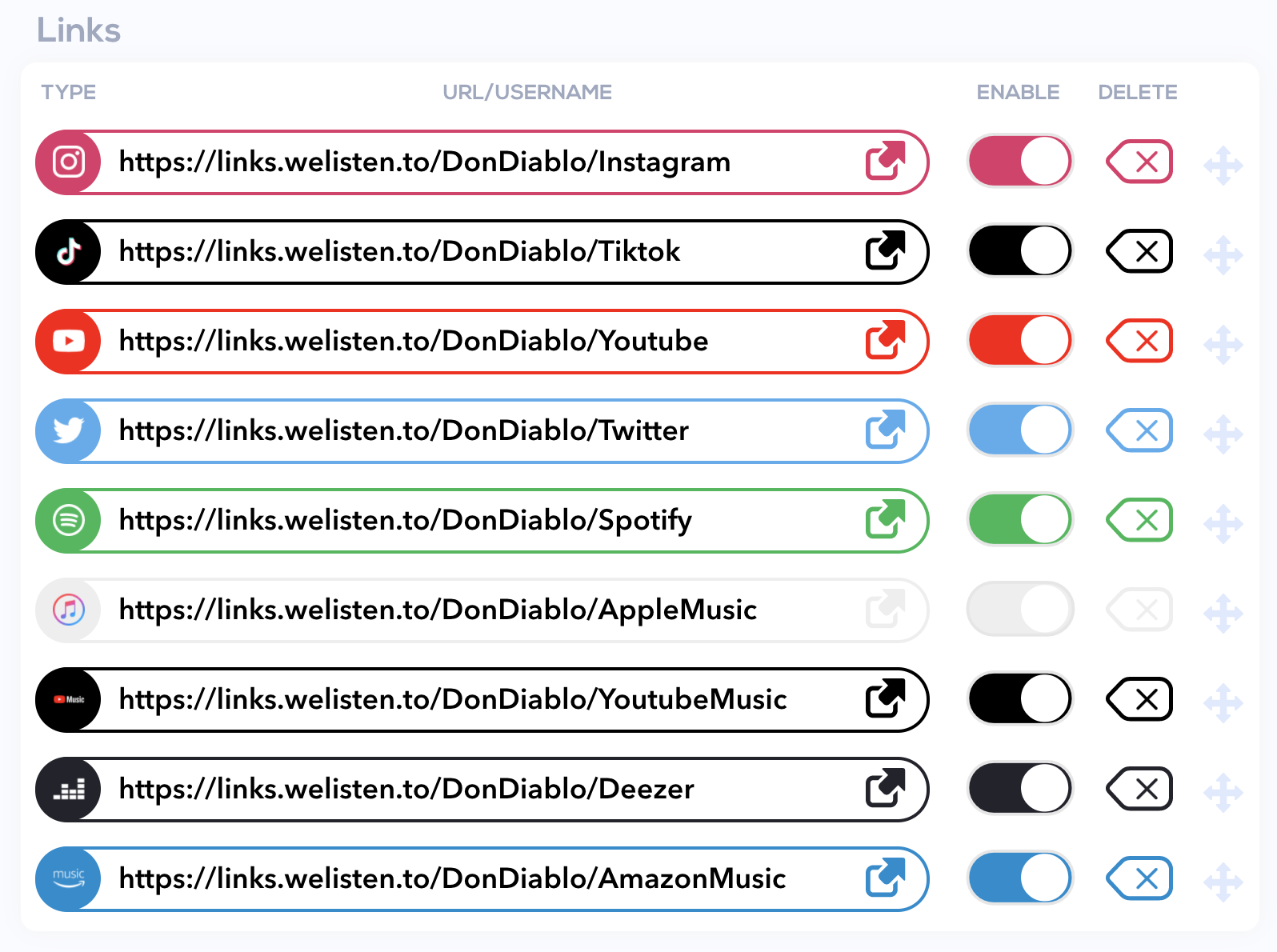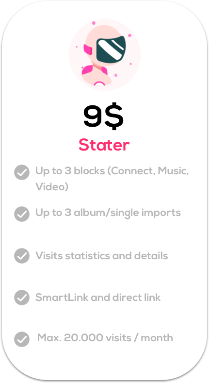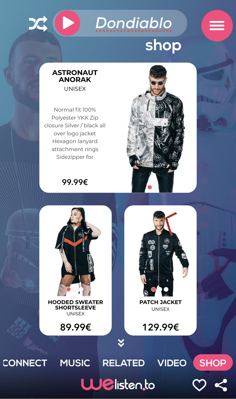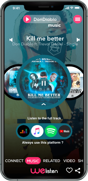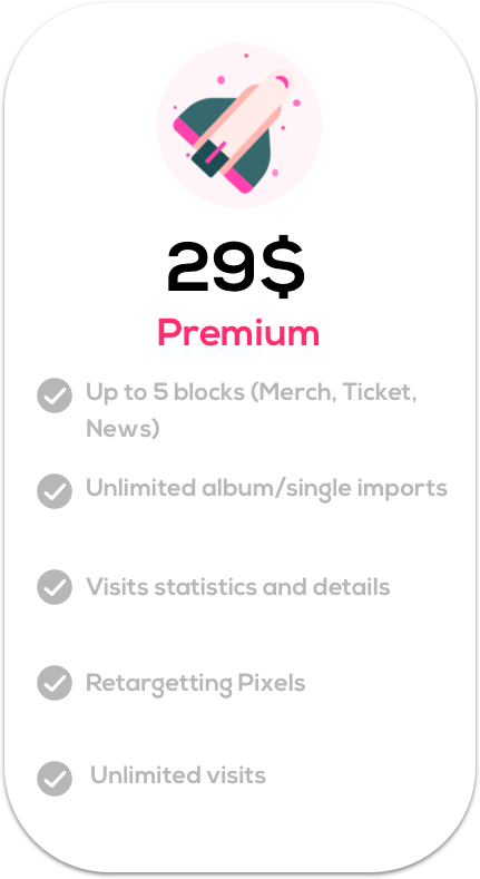 The connect block displays all the artist's links in one place with deep-linking, stats and tracking