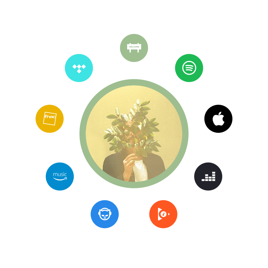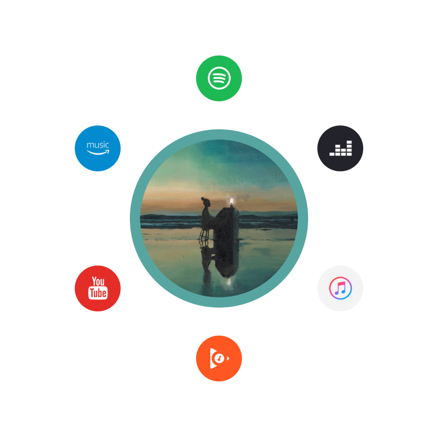 Landing page de l'artiste, d'un album ou d'un single qui regroupe toutes les plateformes, les réseaux sociaux et les autres liens importants sur une page optimisée et design qui respecte son univers graphique