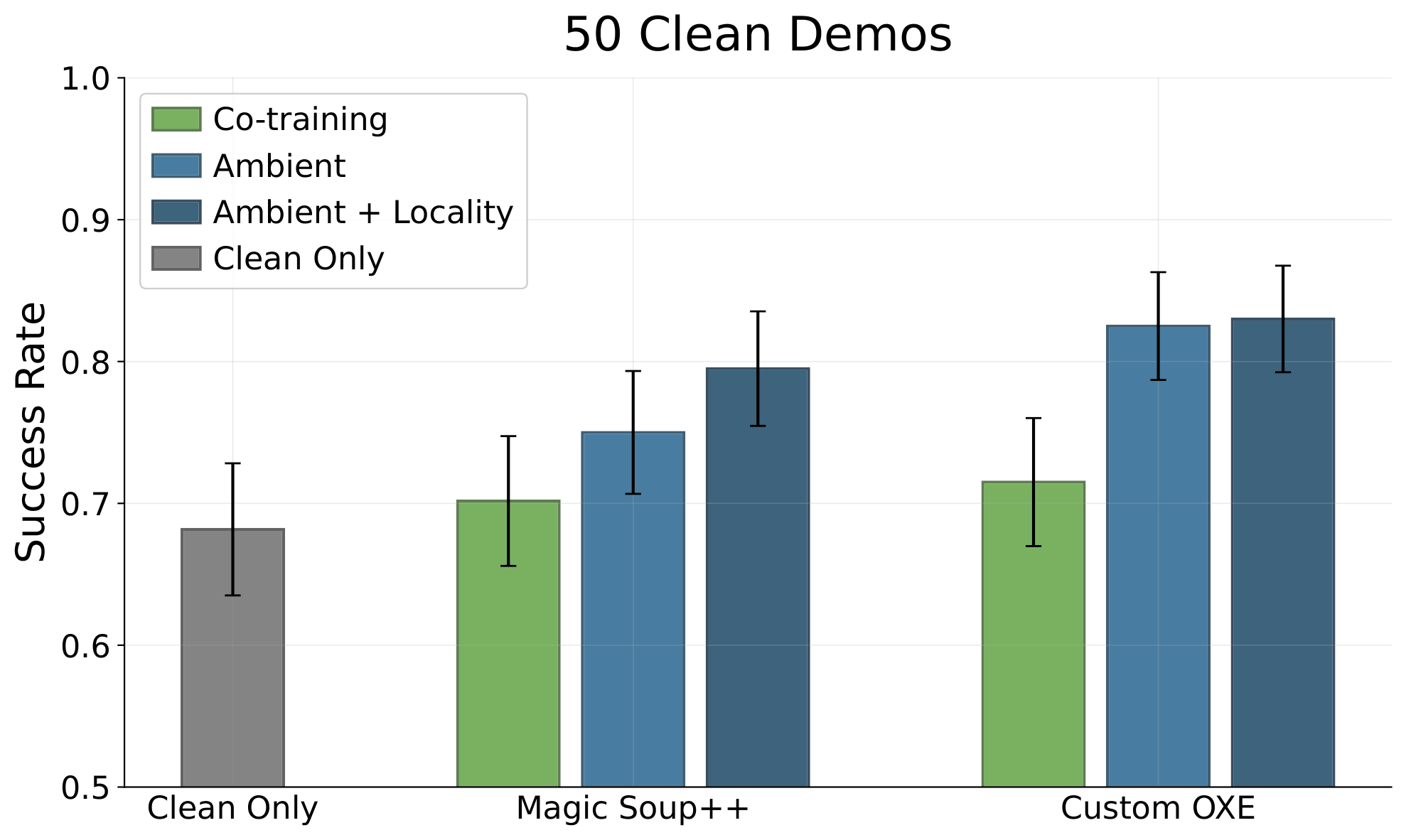 \(\mathcal{D}_{clean}\): 50 in-distribution demos