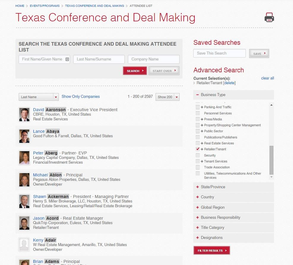 1.Filter your search. In the right column, search under Business Type and scroll until you find Retailers/Tenants, check the box.