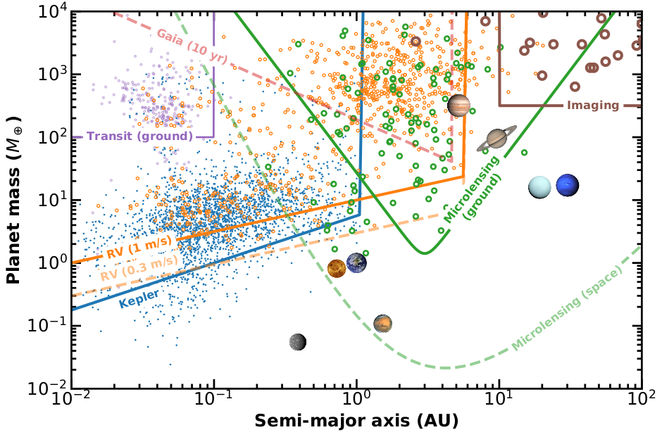 行星系统外部区域(特别是1-10 AU)的质量和角动量占主导 \(\longrightarrow\) 冷行星的存在和分布情况对认识整个行星系统至关重要!