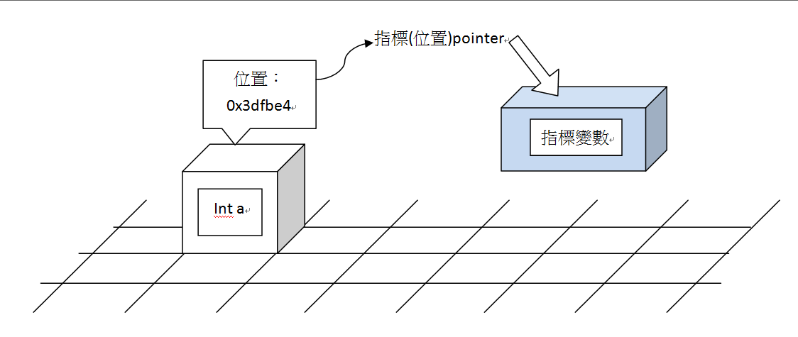 pointer:就是電腦把這個東東儲存在一個地方,而這個地方的地址就是所謂的指標~