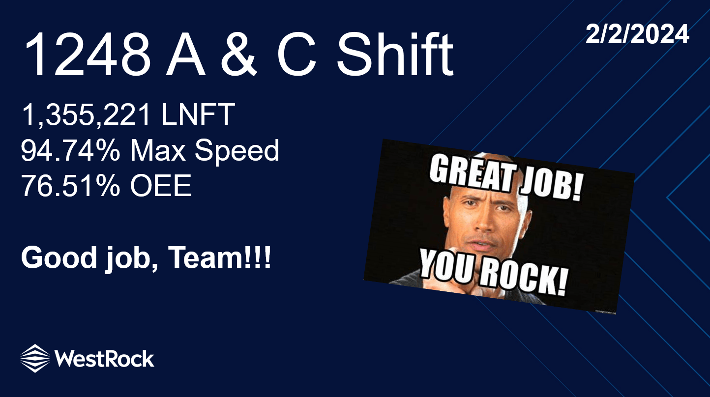 1248 B-Shift New Pizza Record 710K LNFT, 1 MR, 86% MS, 80.28% OEE