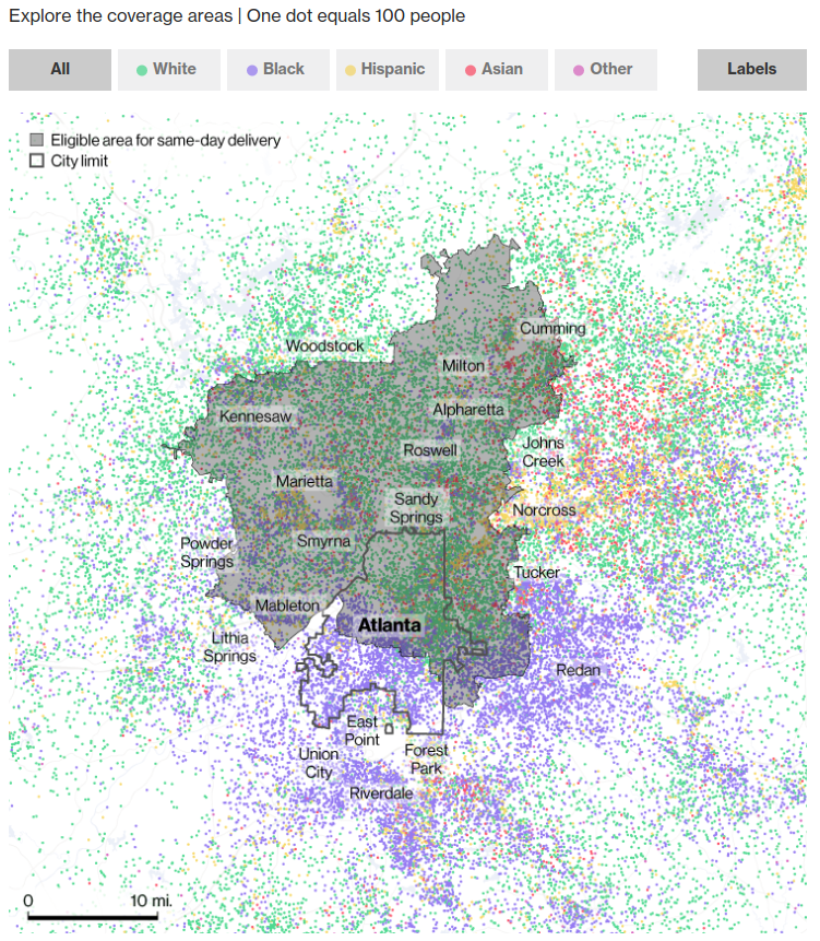 AMAZON exclui Zipcodes de locais majoritariamente negro em serviços de entrega no mesmo dia