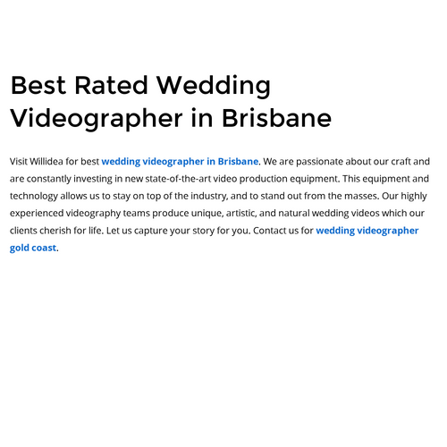 Willidea Photography and Videography Studio has been providing wedding photographer services in Brisbane, Gold Coast, Sunshine Coast since 2011. Our teams have attended over 1500 weddings.