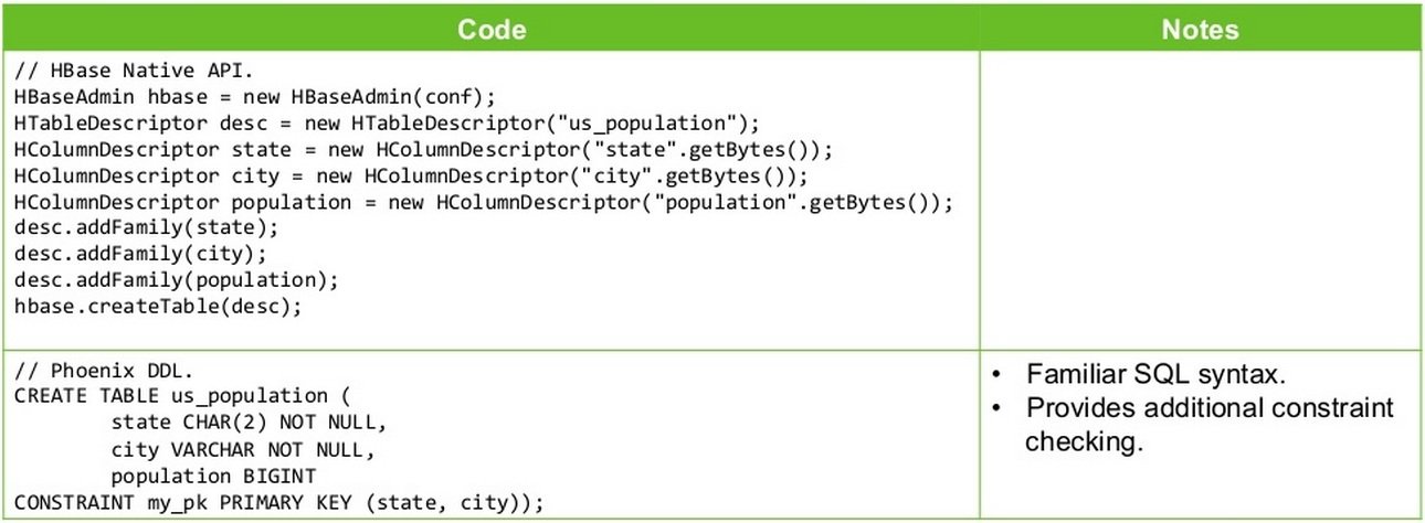 Skin SQL para HBase. Utiliza las API's estándar de JDBC en lugar de las de HBase para crear tablas, insertar y consultar datos.