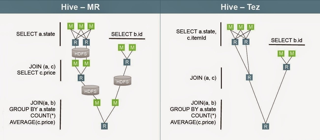 Framework para la construcción de aplicaciones de procesamiento de datos batch e interactivas de alto rendimiento. Tez mejora el paradigma MapReduce.