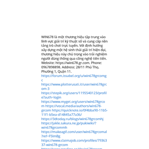 Website: https://win678.gr.comhttps://win678.gr.com WIN678 là một thương hiệu tập trung vào lĩnh vực giải trí kỹ thuật số và cung cấp nền tảng trò chơi trực tuyến. Với định hướng xây dựng một hệ sinh thái giải trí hiện đại, thương hiệu này chú trọng vào trải nghiệm ngườ