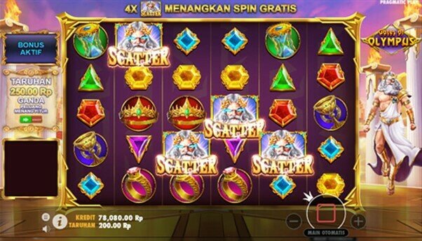 Terdapat Simbol scatter yang ditandai dengan logo kepala dewa Zeus ini menjadi salah satu pertanda untuk memasuki babak bonus tambahan, kita harus mendapatkan total 4 scatter untuk bisa mengikuti babak bonus ini dan kita akan diberikan tambahan sebanyak 15 spin gratis , sunggh menyenangkan bukan