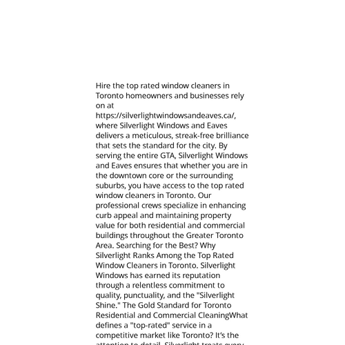 Website: https://silverlightwindowsandeaves.ca/. Hire the top rated window cleaners in Toronto homeowners and businesses rely on at https://silverlightwindowsandeaves.ca/, where Silverlight Windows and Eaves delivers a meticulous, streak-free brill