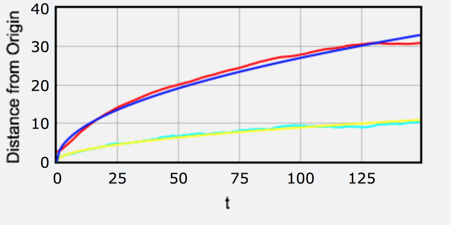 - We just simulated the Brownian motion, and the graph shows that it can be modeled into a square root function too, the coefficient should be related to the density of the particles.