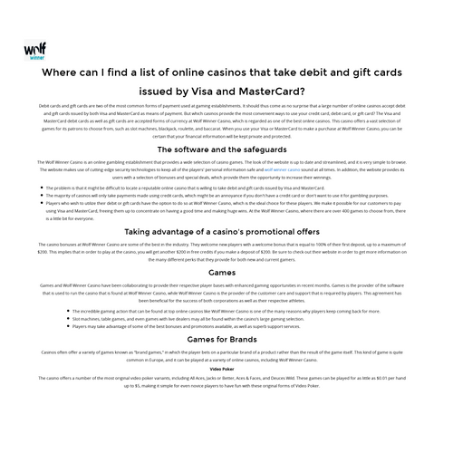 Where can I find a list of online casinos that take debit and gift cards issued by Visa and MasterCard?