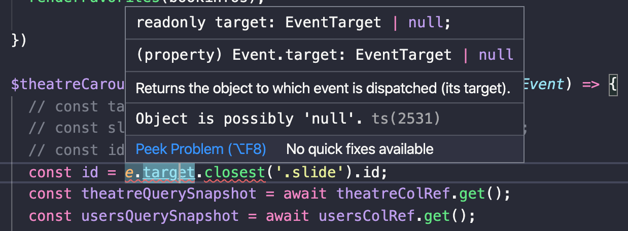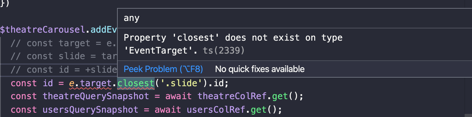 가까운 요소에 접근하기 위해서 계속적인 변수의 선언... 타입스크립트.