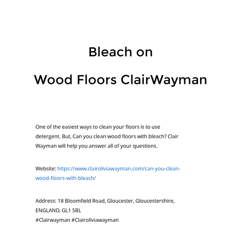 One of the easiest ways to clean your floors is to use detergent. But, Can you clean wood floors with bleach? Clair Wayman will help you answer all of your questions. Website: https://www.clairoliviawayman.com/can-you-clean-wood-floors-with-bleach/ Address: 18 Bloomfield Road, Gloucester, Gloucestershire, ENGLAND, GL1 5BL #Clairwayman #Clairoliviawayman