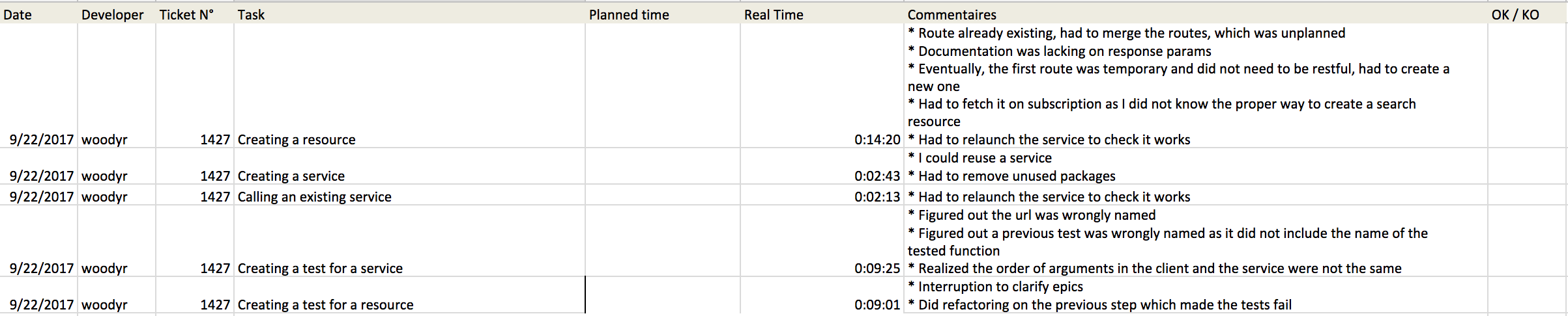 Gathering time and commentaries for high performing developer