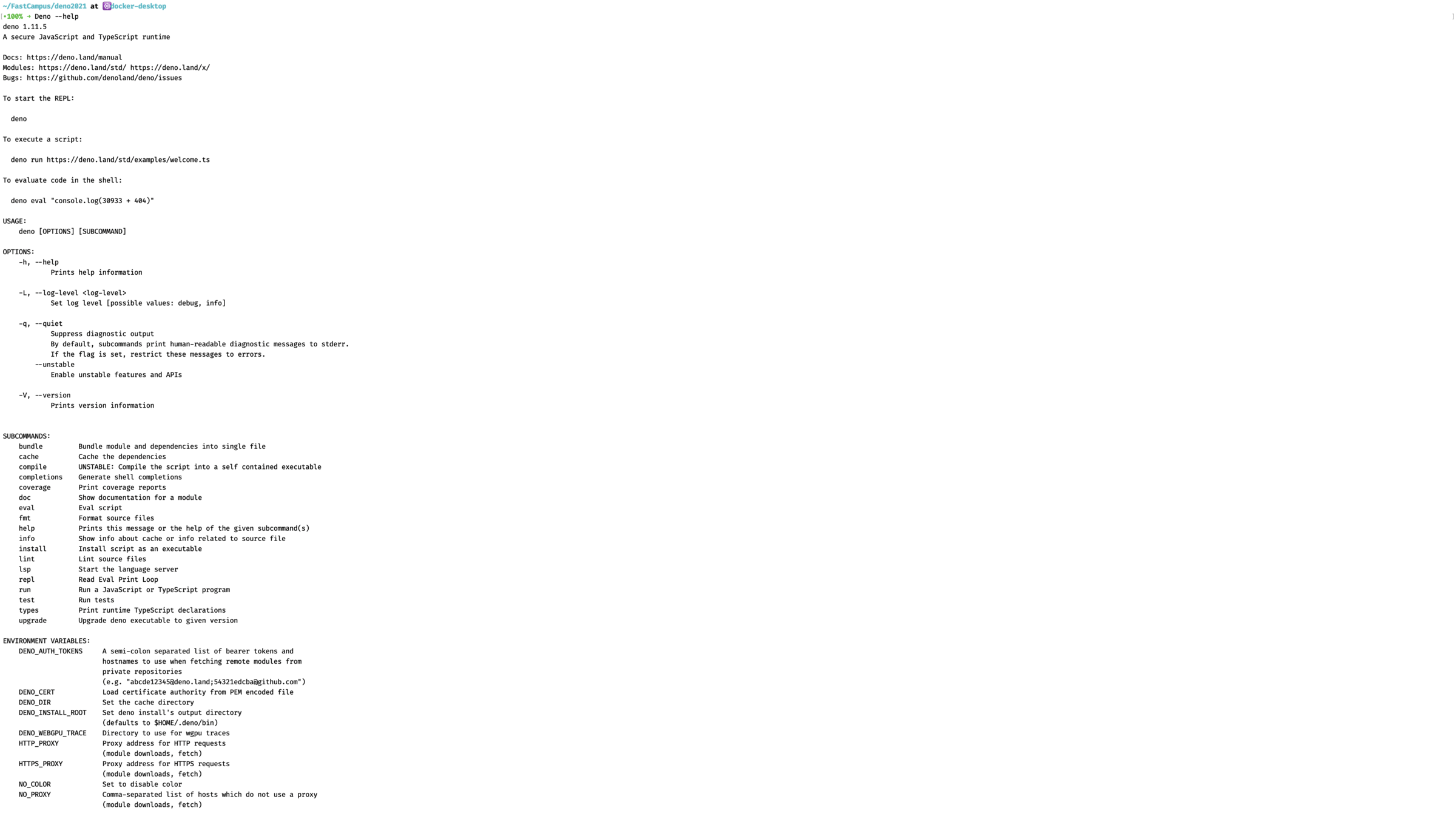 deno 1.12.0➜ deno --helpdeno --help