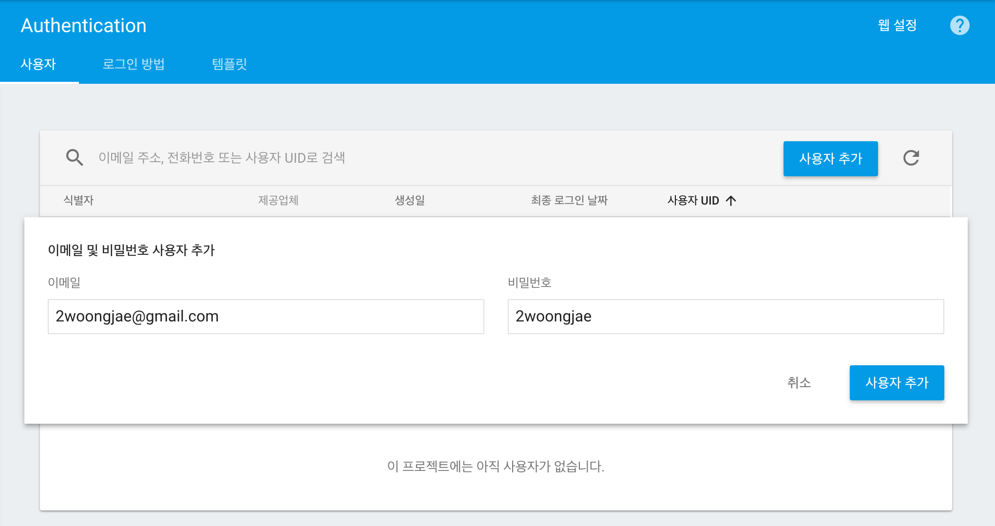 auth.signInWithEmailAndPassword('2woongjae@gmail.com', '2woongjae');