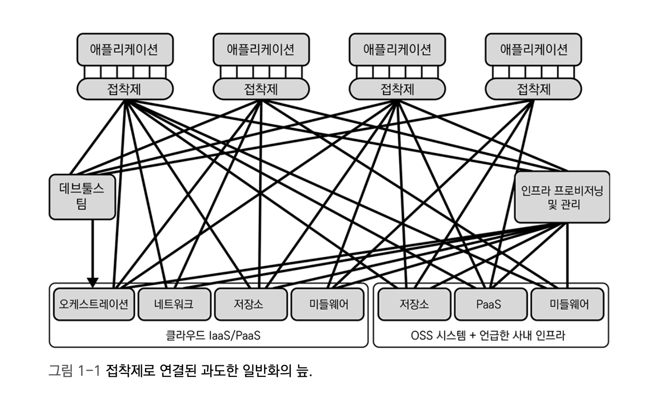 기본요소들을 더 광범위한 요구를 충족할 수 있는 체계적인 플랫폼 역량들로 추상화함으로써 애플리케이션 수준의 접착제를 대부분 제거할 수 있다.