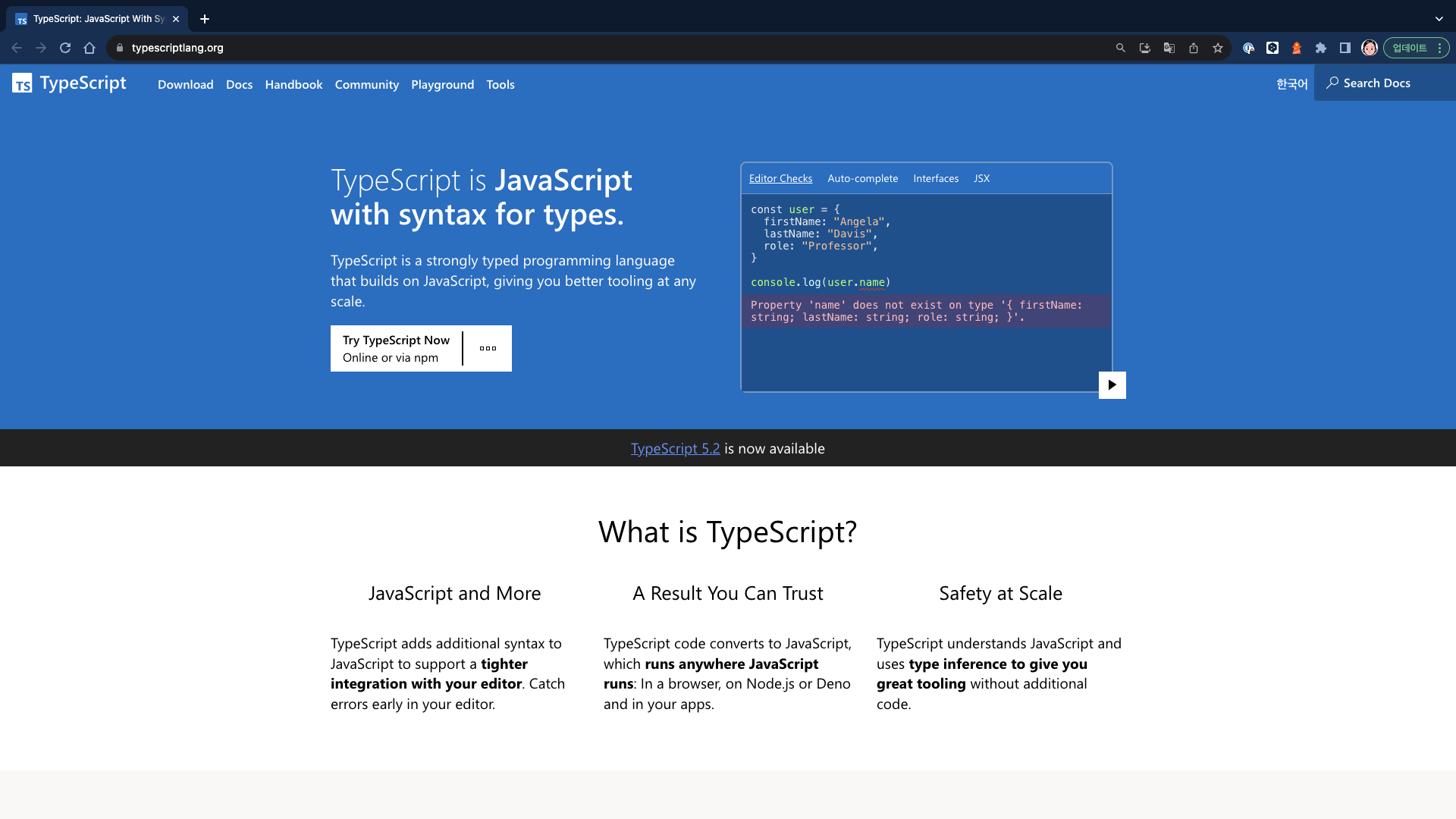 프로젝트에 타입스크립트 컴파일러를 설치 후,