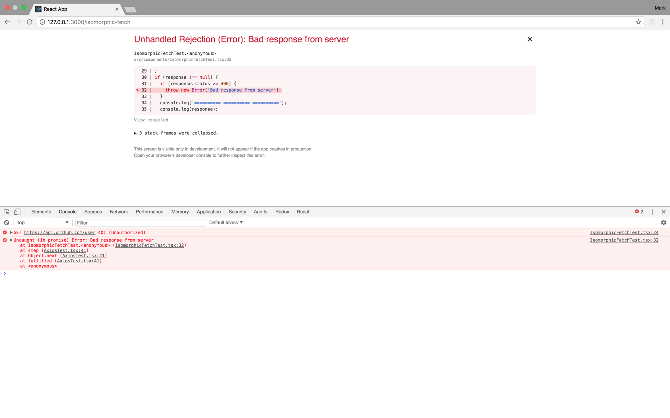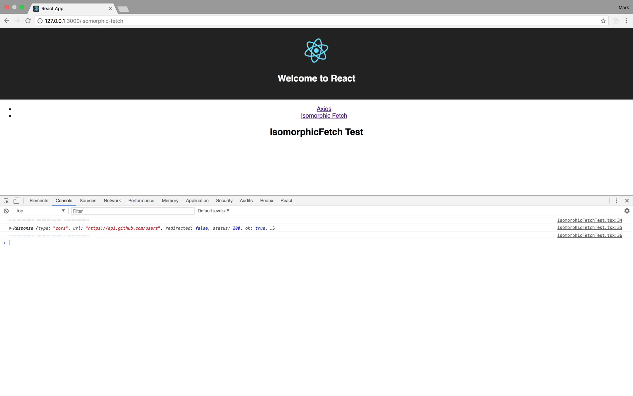 <Route path="/isomorphic-fetch" component={IsomorphicFetchTest} />