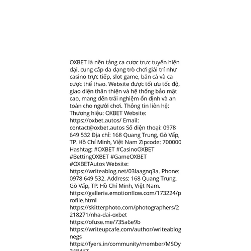 Website: https://writeablog.net/03laagnq3a. OXBET là nền tảng ca cược trực tuyến hiện đại, cung cấp đa dạng trò chơi giải trí như casino trực tiếp, slot game, bắn cá và ca cược thể thao. Website được tối ưu tốc độ, giao diện thân thiện và hệ thống bả