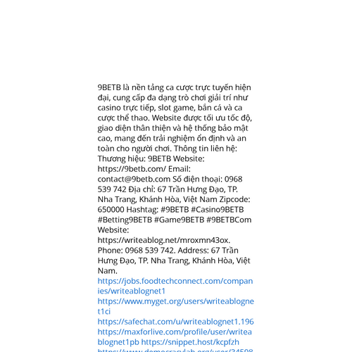 Website: https://writeablog.net/mroxmn43ox. 9BETB là nền tảng ca cược trực tuyến hiện đại, cung cấp đa dạng trò chơi giải trí như casino trực tiếp, slot game, bắn cá và ca cược thể thao. Website được tối ưu tốc độ, giao diện thân thiện và hệ thống bả