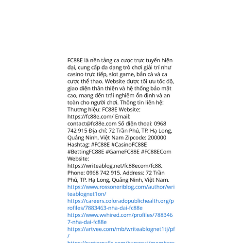 Website: https://writeablog.net/fc88ecom/fc88. FC88E là nền tảng ca cược trực tuyến hiện đại, cung cấp đa dạng trò chơi giải trí như casino trực tiếp, slot game, bắn cá và ca cược thể thao. Website được tối ưu tốc độ, giao diện thân thiện và hệ thống