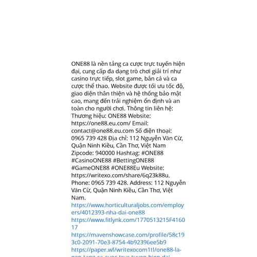 Website: https://writexo.com/share/6q23k88uhttps://writexo.com/share/6q23k88u ONE88 là nền tảng ca cược trực tuyến hiện đại, cung cấp đa dạng trò chơi giải trí như casino trực tiếp, slot game, bắn cá và ca cược thể thao. Website được tối ưu tốc độ, giao diện thân thiện và hệ thống b
