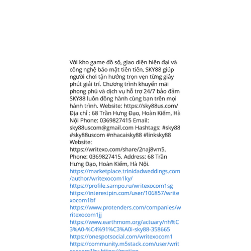 Website: https://writexo.com/share/2naj8vm5https://writexo.com/share/2naj8vm5 Với kho game đồ sộ, giao diện hiện đại và công nghệ bảo mật tiên tiến, SKY88 giúp người chơi tận hưởng trọn vẹn từng giây phút giải trí. Chương trình khuyến mãi phong phú và dịch vụ hỗ trợ 24/7 bảo đảm SKY