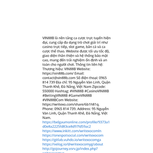 Website: https://writexo.com/share/6b1h81q. VIN88B là nền tảng ca cược trực tuyến hiện đại, cung cấp đa dạng trò chơi giải trí như casino trực tiếp, slot game, bắn cá và ca cược thể thao. Website được tối ưu tốc độ, giao diện thân thiện và hệ thống b