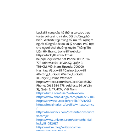 Website: https://writexo.com/share/acc908ac80b2. Lucky88 cung cấp hệ thống ca cược trực tuyến với casino và slot đổi thưởng phổ biến. Website tập trung tối ưu trải nghiệm người dùng và tốc độ xử lý nhanh. Phù hợp cho người chơi thường xuyên. Thông T
