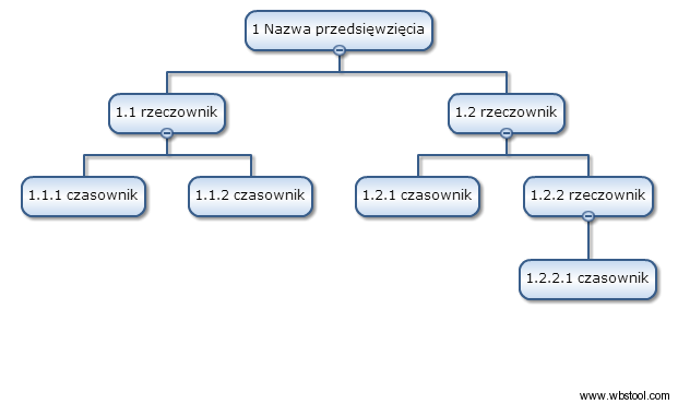 jest to sposób na zorganizowanie przedsięwzięcia w postaci drzewa. Korzeń to nasz cel. Od niego rozchodzą się główne zadania. Na kolejnych poziomach znajdują się poszczególne zadania do wykonania.