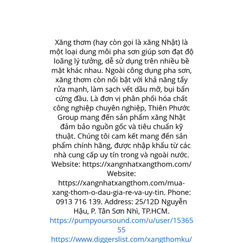 Website: https://xangnhatxangthom.com/mua-xang-thom-o-dau-gia-re-va-uy-tin. Xăng thơm (hay còn gọi là xăng Nhật) là một loại dung môi pha sơn giúp sơn đạt độ loãng lý tưởng, dễ sử dụng trên nhiều bề mặt khác nhau. Ngoài công dụng pha sơn, xăng thơm c