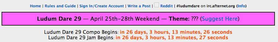 Es la competición de haz un juego en 48 horas y es la competición por la que se conoce Ludum Dare en el mundo mundial.