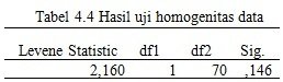 4.2.3 Hasil Uji Homogenitas