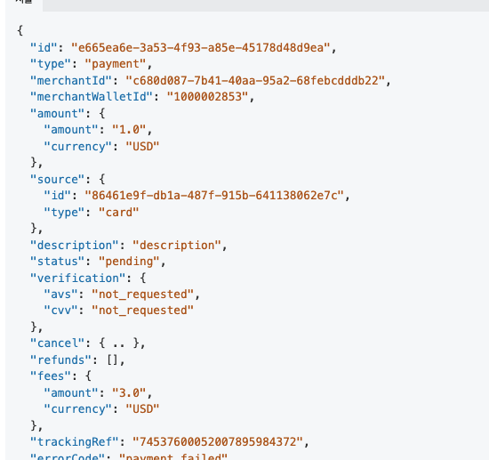 - 지불에 대한 특정 오류 코드를 발생시키고 싶으면 각각 금액을 달리함으로써 해당 오류를 발동 시킬수 있습니다.